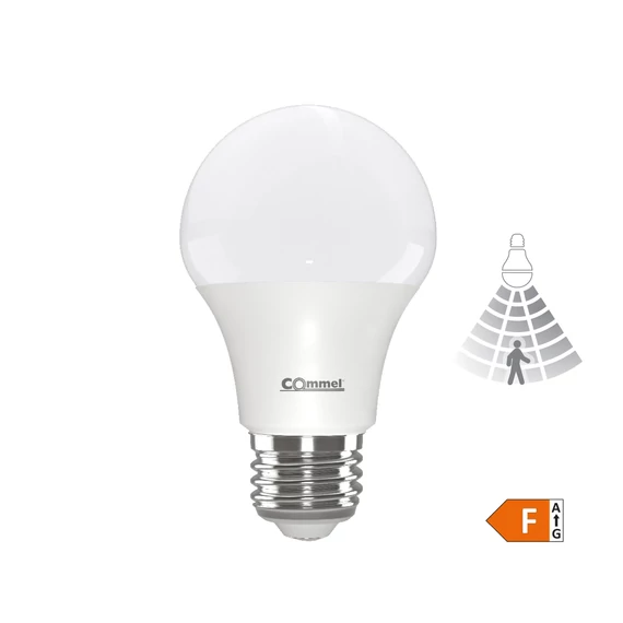 Energiatakarékos Commel LED izzó beépített mozgásérzékelővel, amely automatikusan felkapcsol, ha mozgást érzékel 3–5 méteres távolságon belül.